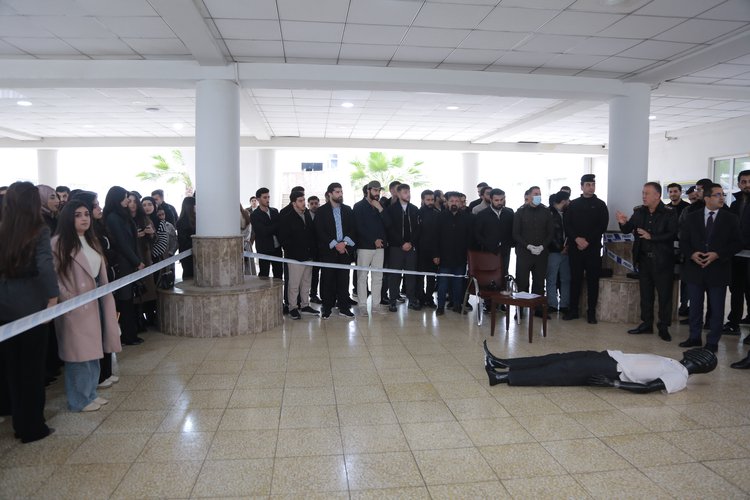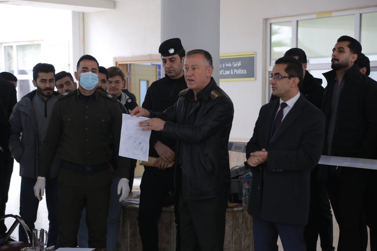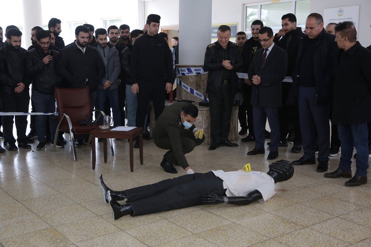 On Sunday, 18 January 2026, at 10:30 a.m., and in the presence of Prof. Dr. Dilshad Abdulrahman Yusuf, Dean of the College of Law and Politics, and Colonel Hassan Ahmed Bakr, Director of Criminal Investigations and Forensic Evidence at Duhok Police Directorate, the College of Law and Politics organized an activity on crime scene investigation for fifth-year students.