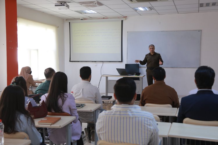 On Wednesday (5/11/2025) at 10:00 a.m., the College of Law and Politics, in coordination with the Directorate for Combating Violence Against Women and the Family, organized a practical lecture delivered by Legal Major Nihad Ali Mohammed, entitled “Criminal Complaints and Domestic Violence Complaints,” for fifth-year students of the Department of Law. The lecture took place at the College building.