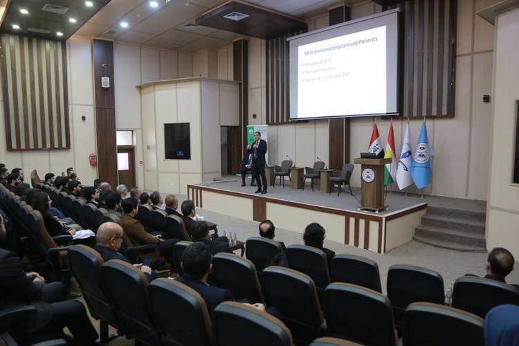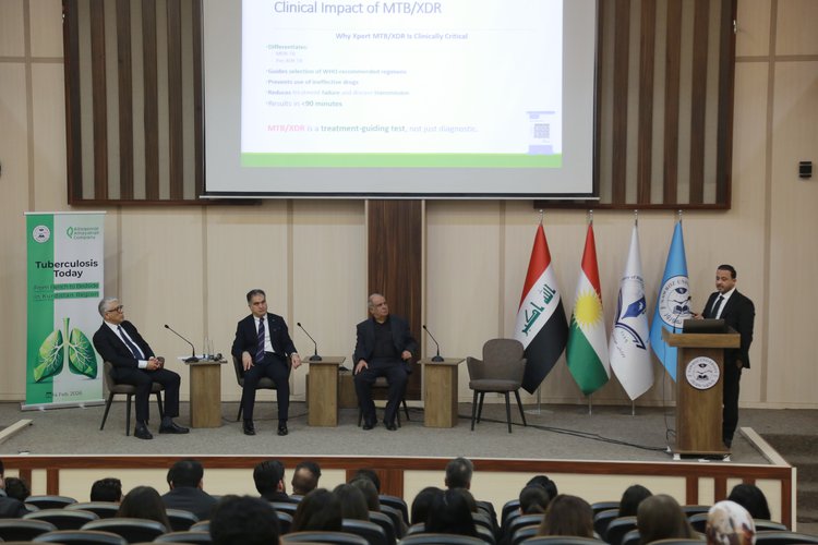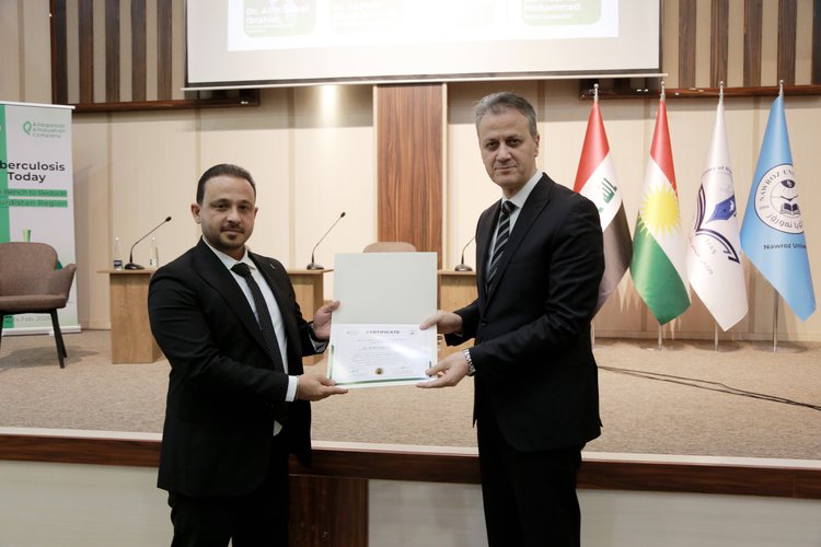 On Saturday (14/2/2026), in the presence of the Chairman of the Board of Trustees, Prof. Dr. Lazgin Abdi Jamil, the President of Nawroz University, Asst. Prof. Dr. Mevan Arif Abdulrahman, and the University’s assistants, the Department of Medical Laboratory Sciences at Nawroz University, in cooperation with Al-Taqaniyat Al-Hayatiyah Company, organized a workshop entitled “Tuberculosis in the Kurdistan Region: From Laboratory to Patient Bedside.”