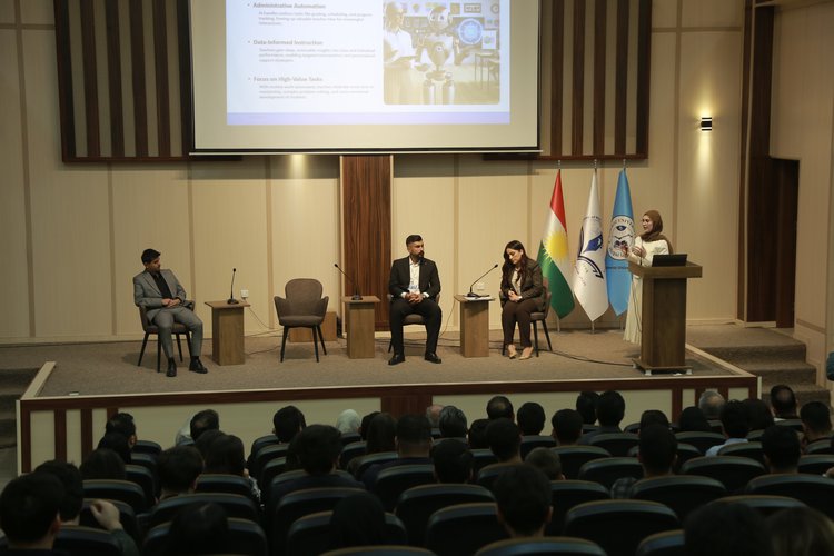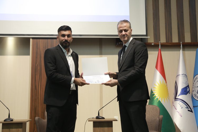The event opened with a speech delivered by Prof. Dr. Hoger Taher Tawfiq, Vice President of Nawroz University for Administrative, Financial, and Student Affairs, who emphasized the growing importance of artificial intelligence in modern fields and the need to keep pace with technological advancements in education and research.