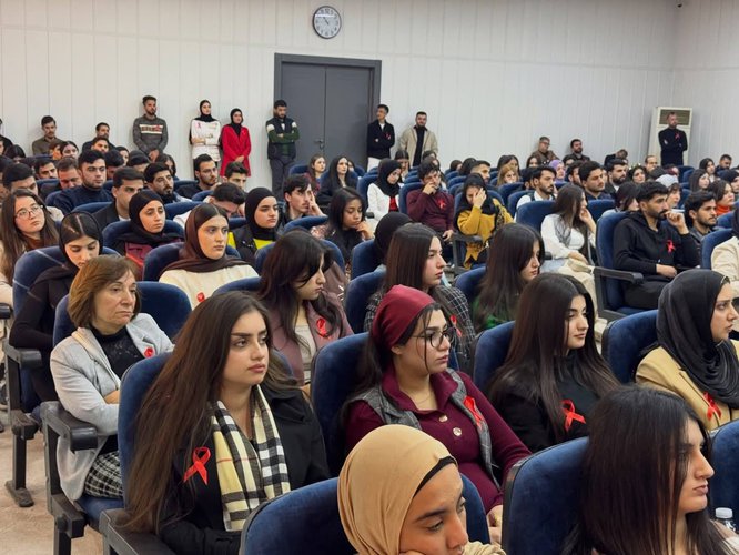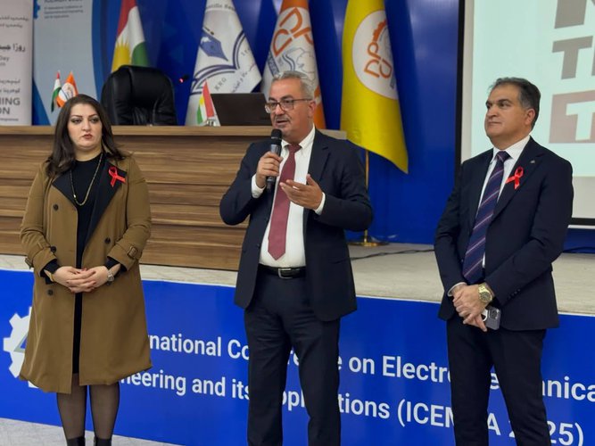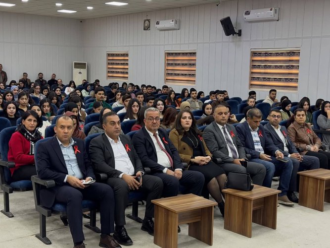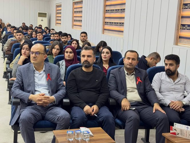 Prof. Dr. Muayad Aghali Merza, Vice President of Nawroz University for Scientific Affairs, participated on Monday, 1 December 2025, in the World AIDS Day event held at the Duhok Polytechnic University Hall, following an official invitation from the Duhok Technical Institute.