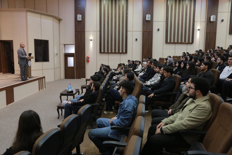 On Tuesday, 16 December 2025, Mr. Ziyad Ubaid, director of the Health and Safety at Nawroz University, delivered a lecture entitled “The Importance of Health and Safety in the University Environment” to first-year students from the Departments of Dentistry and Pharmacy, held at Rahmi Hakari Hall.