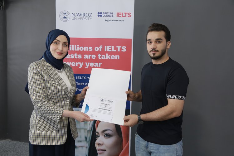 On Saturday, 30 August 2025, in the presence of the Director of the IELTS Registration Centre at Nawroz University, Ms. Maryam Waleed Khalid, a special ceremony was held to distribute IELTS certificates to participants of the preparation courses.