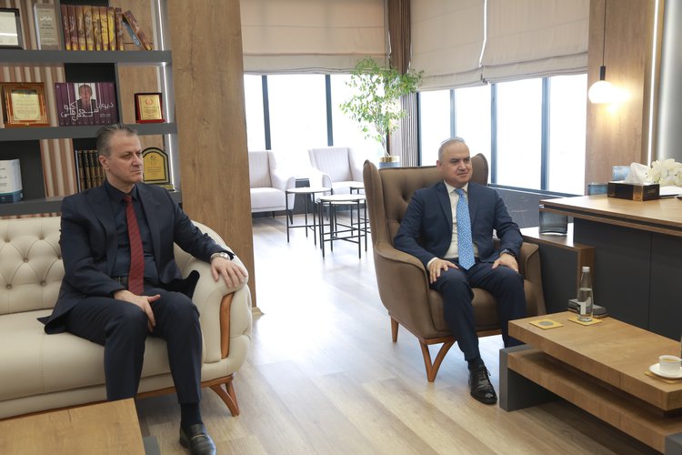 On Sunday (8/2/2026) at 10:00 a.m., the President of Nawroz University, Asst. Prof. Dr. Mevan Arif Abdulrahman, received Iraqi Ambassador Imad Mirza Doski. During the meeting, both sides discussed the educational situation and opportunities available for students and graduates within the region and abroad.