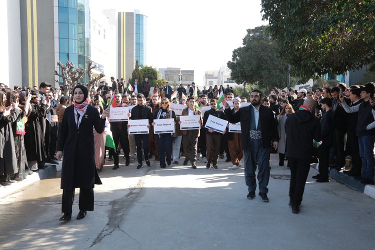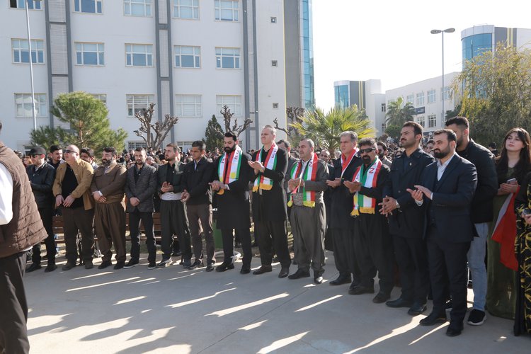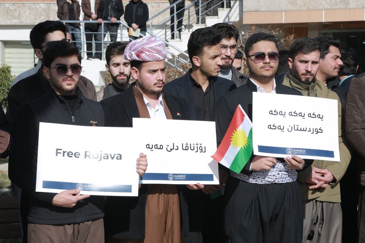 ل رۆژا ئێکشەمبێ رێکەفتی (25/1/2026) ل دەمژمێر (11:00) سپێدێ، ب ئامادەبوونا سەرۆکێ زانکۆیێ پ. هـ. د. مێڤان عارف عەبدولرەحمان و هاریکارێن سەرۆکێ زانکۆیێ، راگرێن کۆلیژان، مامۆستا و قوتابیێن زانکۆیێ و دەزگەهێن راگەهاندنێ، زانکۆیا نەورۆز پشتەڤانیا خۆ بۆ رۆژئاڤایێ کوردستانێ راگەهاند و ب ئارمانجا گەهاندنا پەیامێ، ب زمانێ جودا پەیڤێن پشتەڤانیێ بۆ رۆژئاڤایێ کوردستانێ هاتنە پێشکێشکرن.